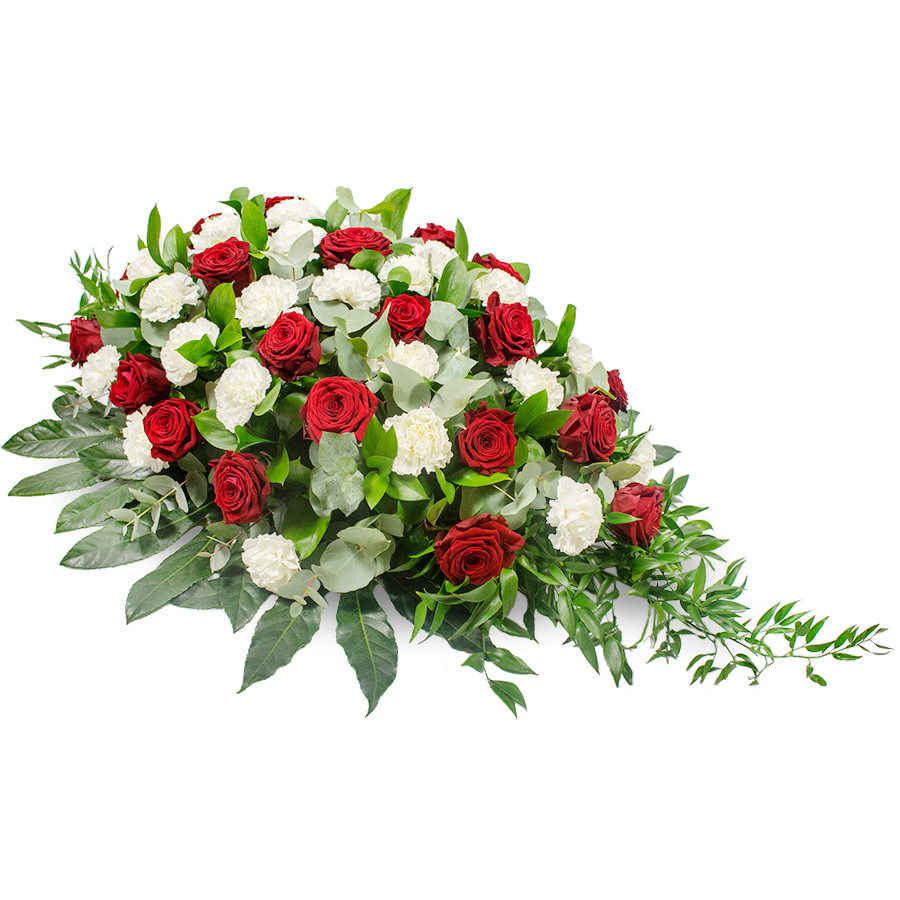 Delight in the beauty of a carefully crafted arrangement that speaks volumes of affection and remembrance. Featuring bold red roses paired with soft white carnations and enhanced by fresh Aral, Ruscus, and Eucalyptus leaves, each bloom is hand-selected for its superior quality. This bouquet promises a stunning, fresh display perfect for expressing heartfelt sentiments.