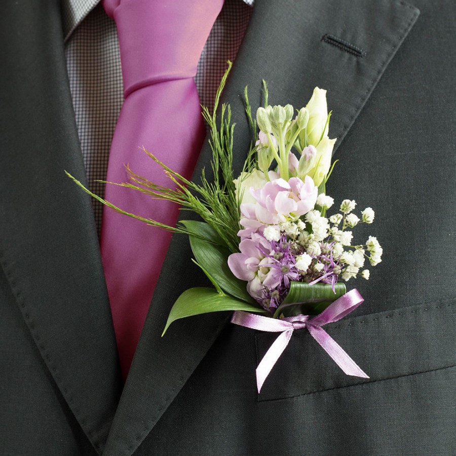 Charming Lisianthus & Veronica Groom Buttonholes