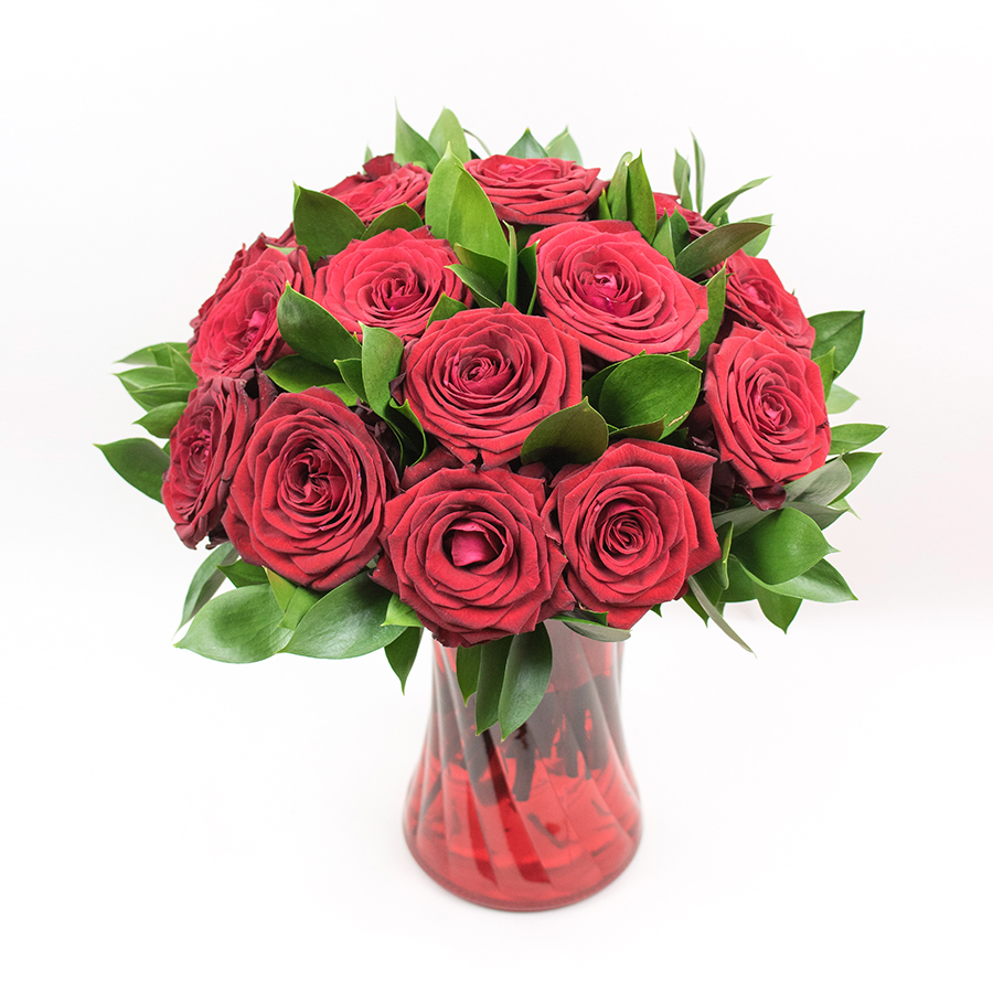 Make someone's heart overflow with the delivery of this exquisite and elegant bouquet. With a heart of stunningly romantic red roses and supported by aspidistra leaves it is a real symphony for the senses.