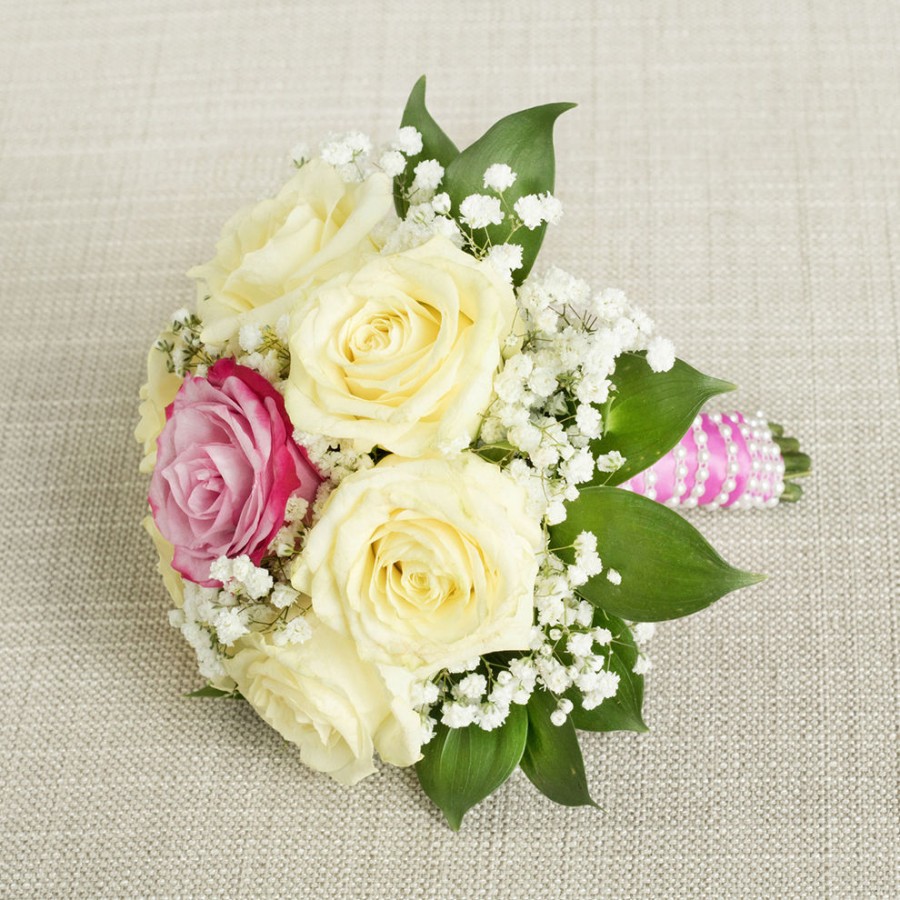 The soft pink and creamy white roses were perfect for our romantic theme. The arrangement was flawless.